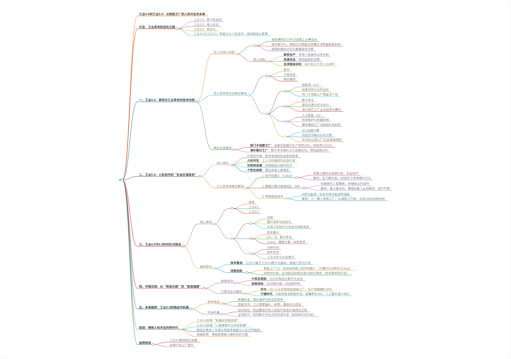 工业4.0到工业5.0的演进标志着制造业从智能化向人机共生的重要转变。工业4.0以物联网、数字孪生、AI等技术为核心,实现柔性生产和全流程自动化,如西门子成都工厂等案例所示。工业5.0则强调人机协作与社会价值,通过协作机器人、情感计算和零碳技术等实现可持续发展。中国企业在政策支持下快速转型,华为、宁德时代等成为智造标杆。未来制造业将面临数据安全等技术挑战,但也将创造更高价值的就业机会。工业5.0时