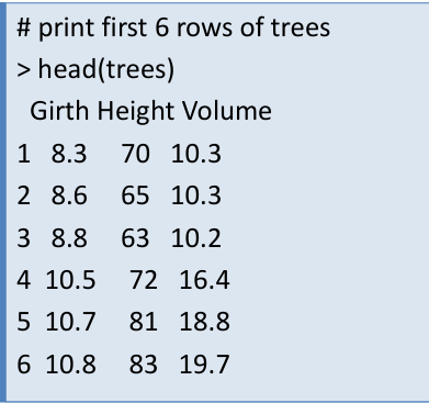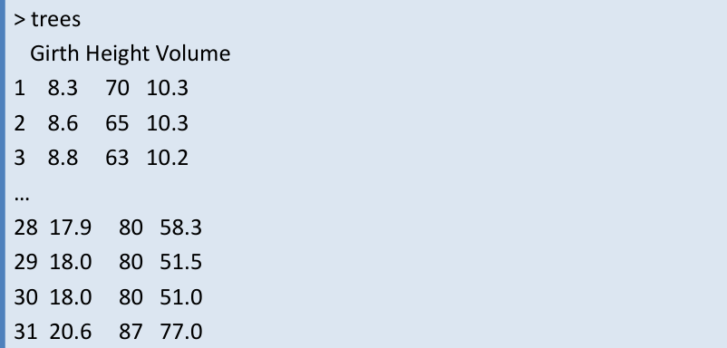 trees(Girth, Height and Volume for Black Cherry Tree)用于练习: