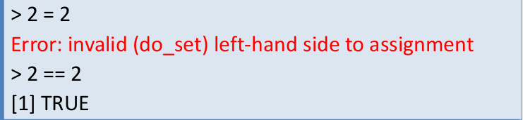 =用于赋值;比较请用==。如2 = 2会报“invalid left-hand side to assignment”,正确写法2 == 2。