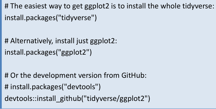 install.packages("tidyverse"); library(tidyverse);或仅装ggplot2。