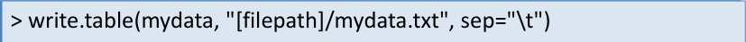 write.table(mydata, "path/mydata.txt", sep="\t")