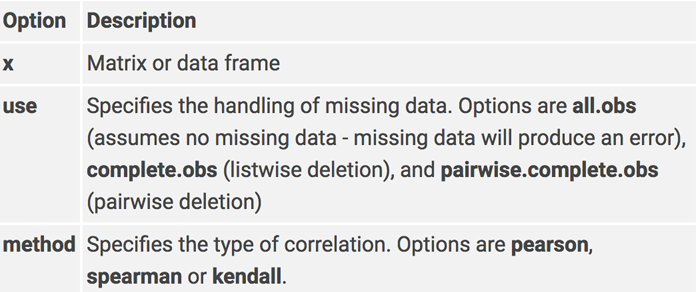 use="complete.obs";否则可能得到 NA 结果或错误。 -