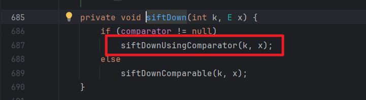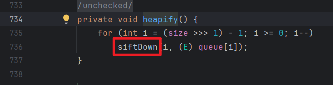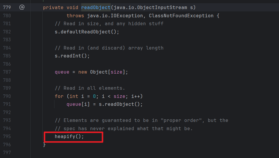 看到siftDownUsingComparator()方法,这样就闭合了,这算是能够自动调用siftDownUsingComparator()方法了,不用管太多,只是跟进一下看看readobject方法是怎么调用到siftDownUsingComparator的。