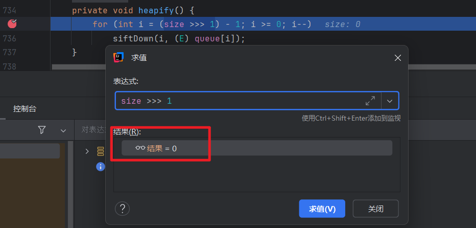 可以看到结果为0,现在需要更改size的值,等于以就可以进入for循环。
