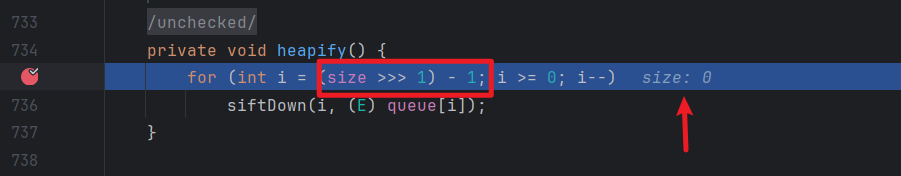 size就是PriorityQueue 这个队列的长度可以理解为数组的长度
