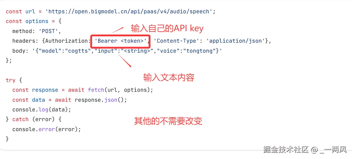 二、代码实战:用 Fetch 调用 TTS 接口