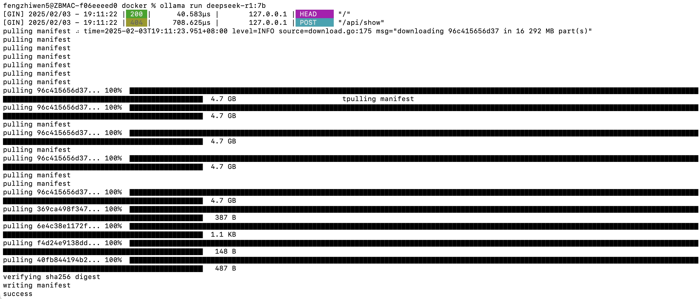 1.运行命令ollama run deepseek-r1:7b安装 DeepSeek R1 模型。
