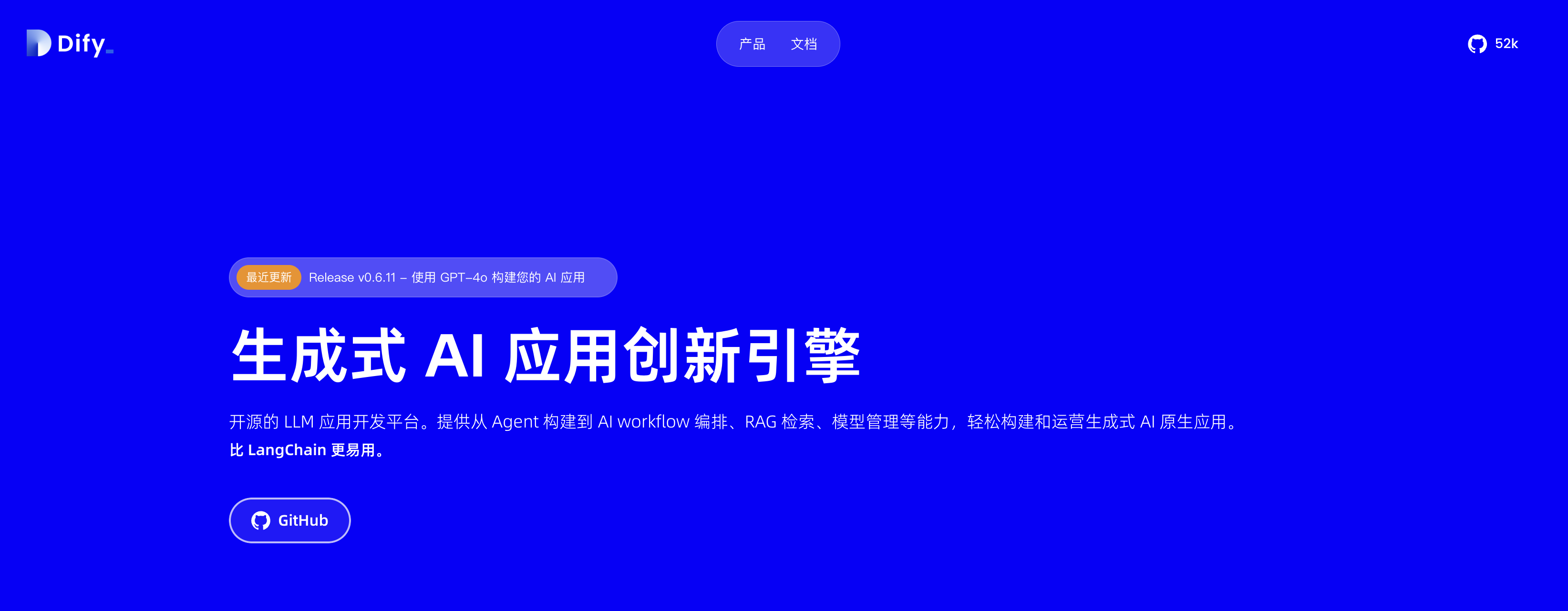 dify是开源的 LLM 应用开发平台,旨在帮助开发者轻松构建和运营生成式 AI 原生应用。提供从 Agent 构建到 AI workflow 编排、RAG 检索、模型管理等能力,轻松构建和运营生成式 AI 原生应用。比 LangChain 更易用。官方地址:http://difyai.com/