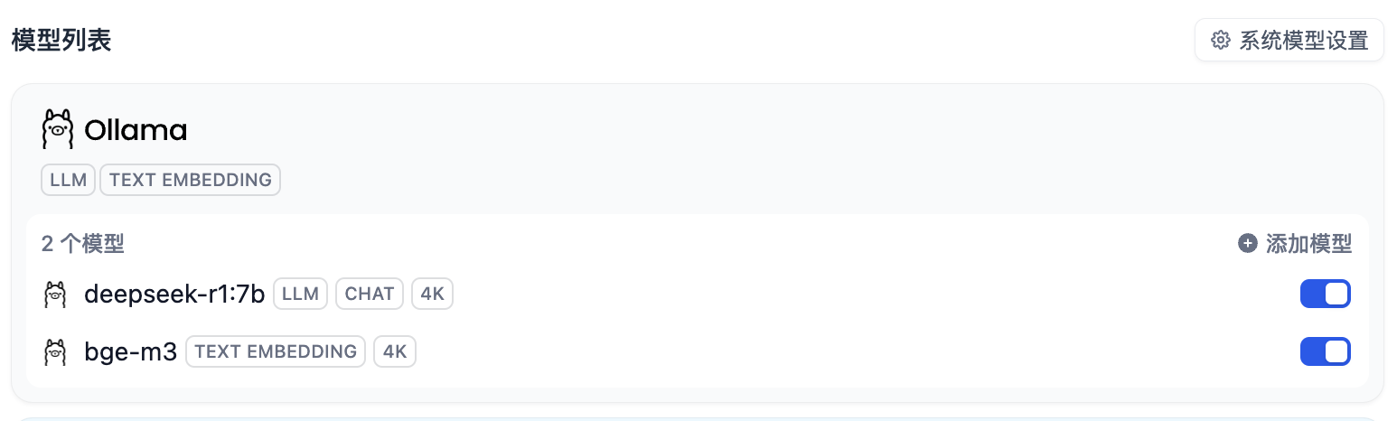 •模型名称,填写具体部署的模型型号。如上文部署的模型型号为 deepseek-r1 7b,因此填写deepseek-r1:7b