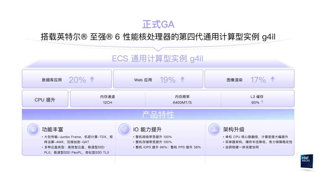 以火山引擎最新推出的 g4il 云实例为例,其搭载了英特尔®至强® 6 性能核处理器。