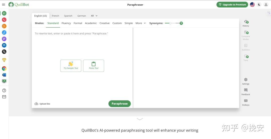 目前Standard和Fluency 2个版块是免费的,拖动右边的Synonyms,可以自由决定改写的强弱和程度。
