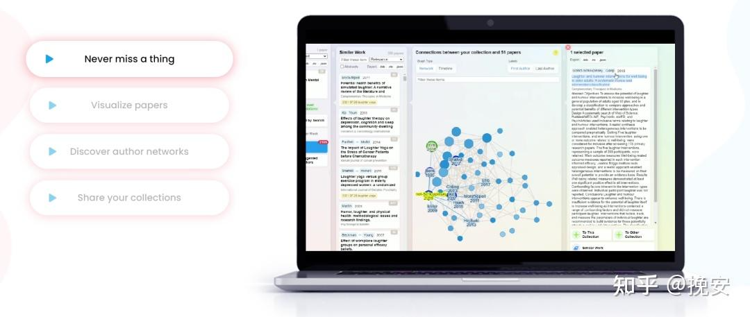 它可以快速高效地找到你感兴趣研究方向的大量文献,并呈现出可视化的关系网图,确保你没有错过一篇重要的论文;为你的论文创建参考文献;发现最相关的先前和衍生论文;建立文件夹,并与zotero联动,清晰明了地整理、分析、引用相关文献。