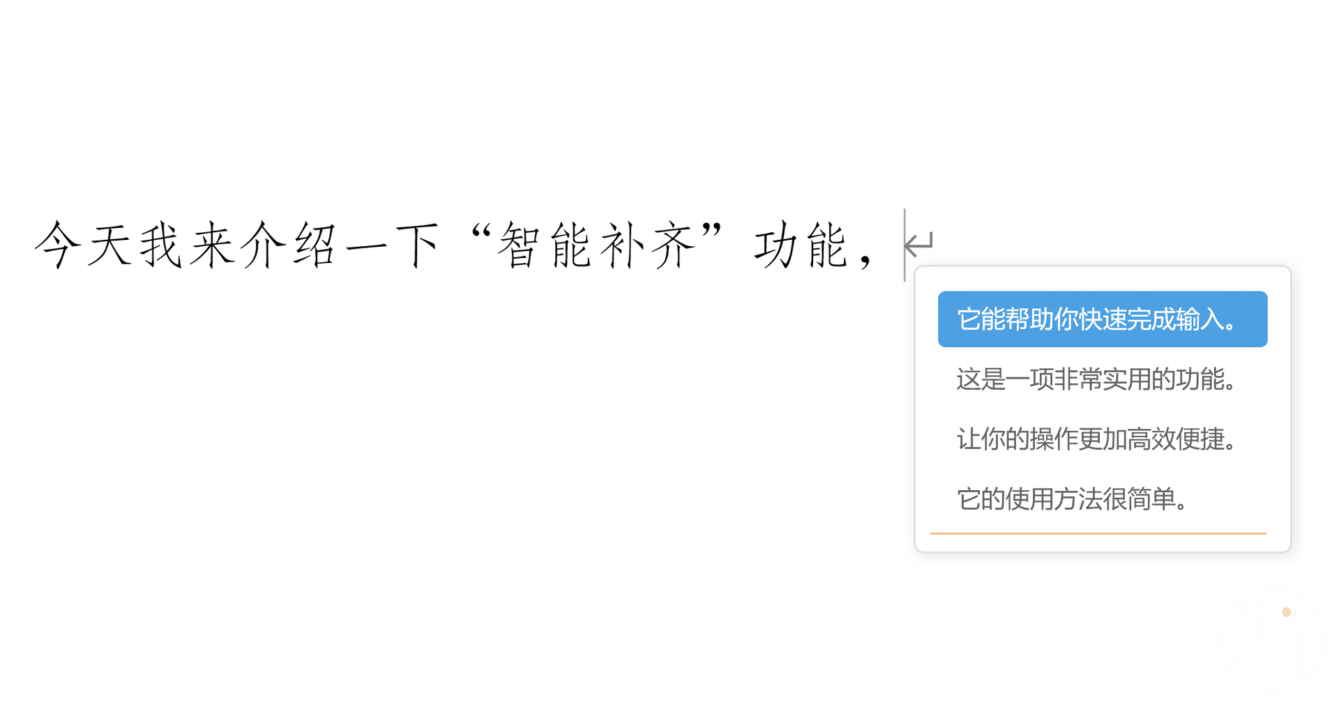 “智能补齐”功能是没有主动执行的按钮的,它是一个被动触发的功能,在我们日常打字的时候会自动生效。