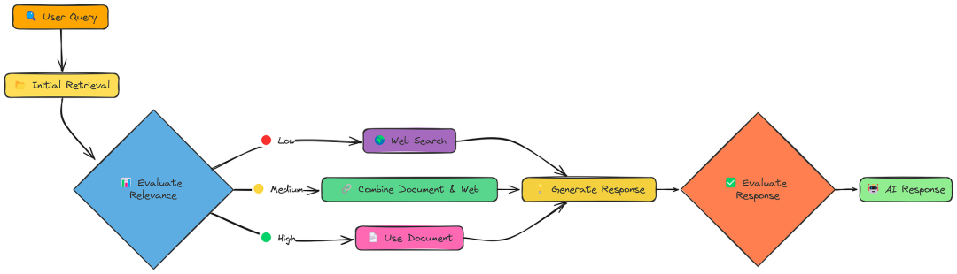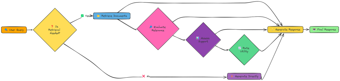 通过在必要时动态切换到网络搜索,它可以处理更广泛的查询并避免陷入不相关或不充分的信息。