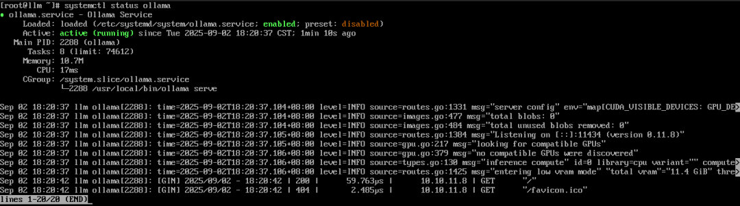 在终端中执行以下命令,确认Ollama服务已正常运行: