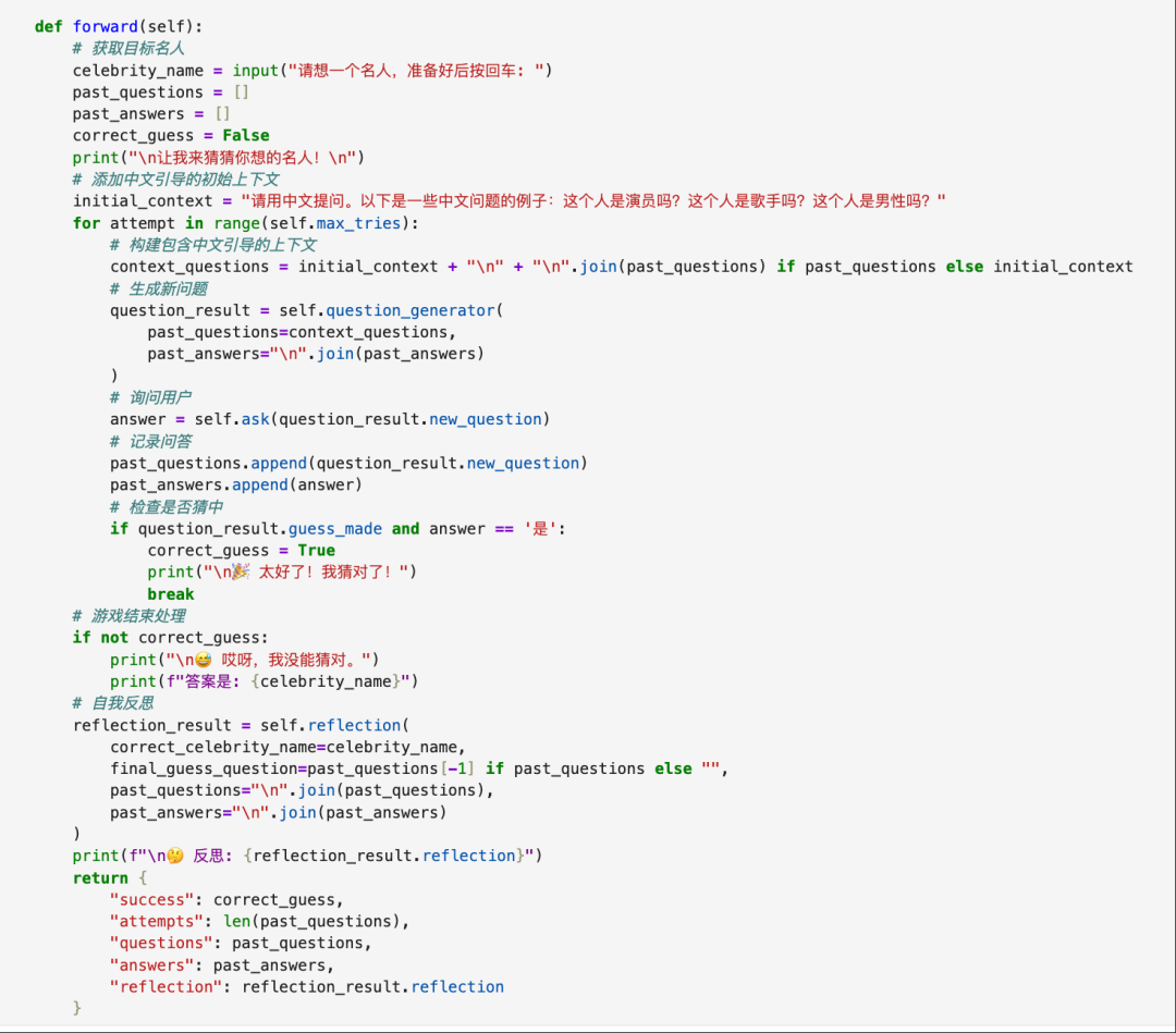 设置guess_made,当AI认为有足够的信息可以推断时,guess_made=True时,AI认为信息足够,开始直接猜测。当guess_made=False时,AI生成宽泛的分类问题继续提问。