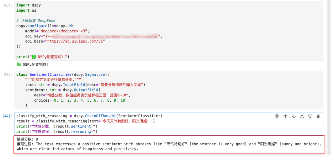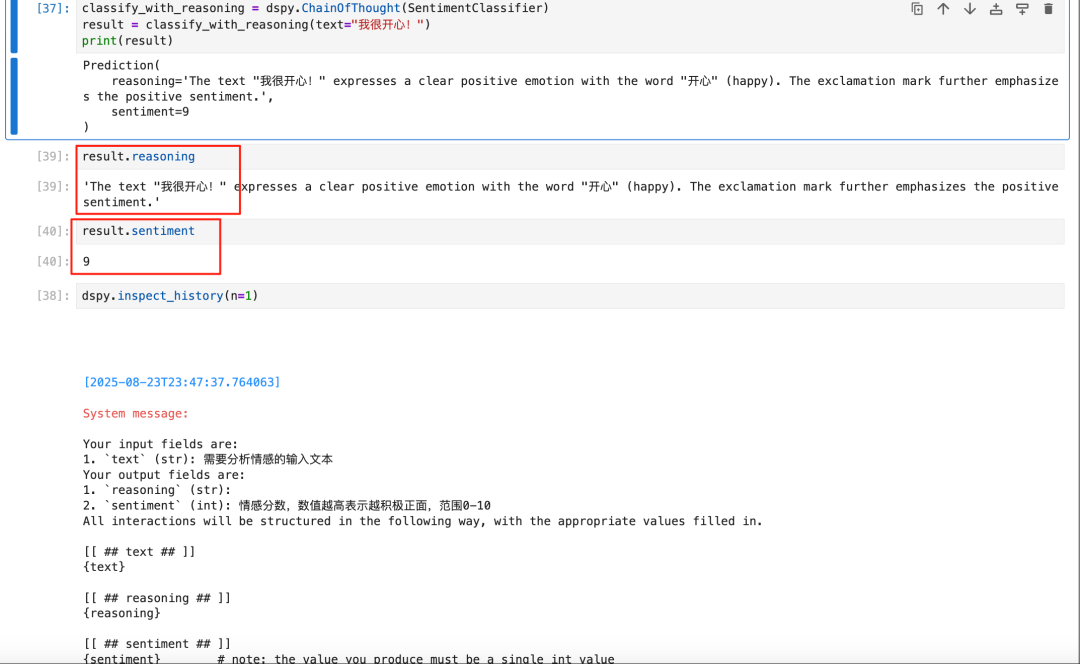 - • dspy.ChainOfThought :带推理过程的模块,在输出中增加reasoning字段