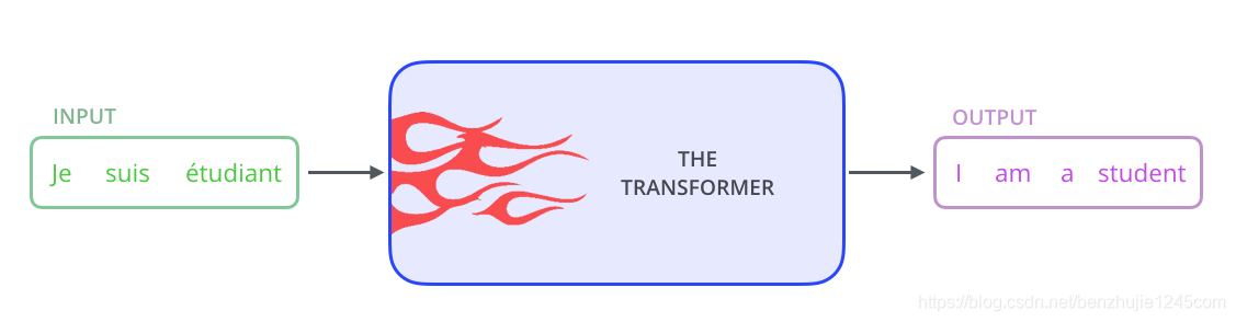 首先,让我们先将 Transformer 模型视为一个黑盒,如图 1.2 所示。在机器翻译任务中,将一种语言的一个句子作为输入,然后将其翻译成另一种语言的一个句子作为输出。