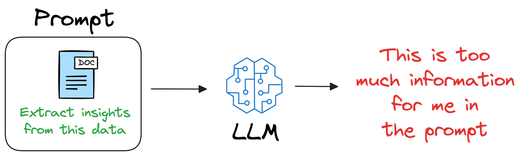 But since LLMs usually have a limit on the context window (number of words/tokens they can accept), the additional information can exceed that limit.