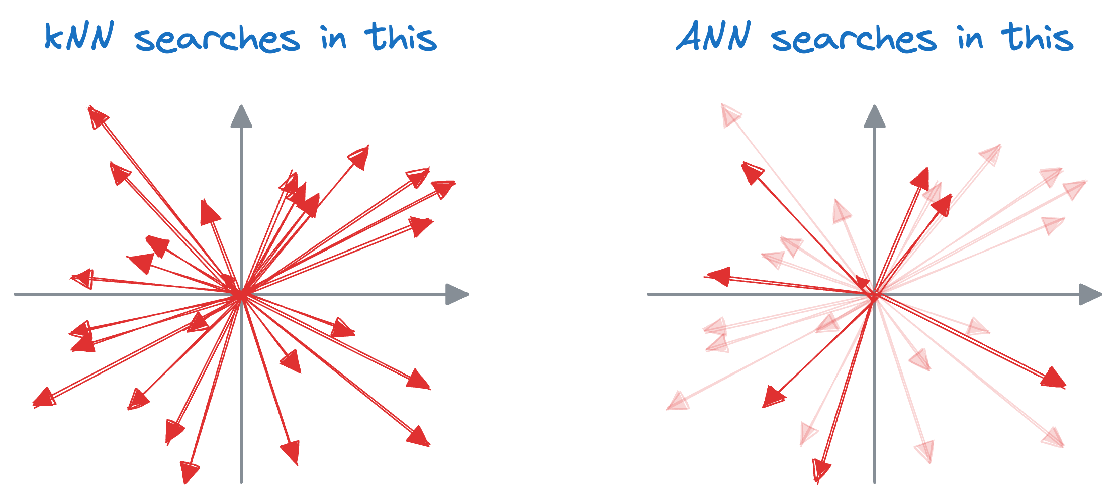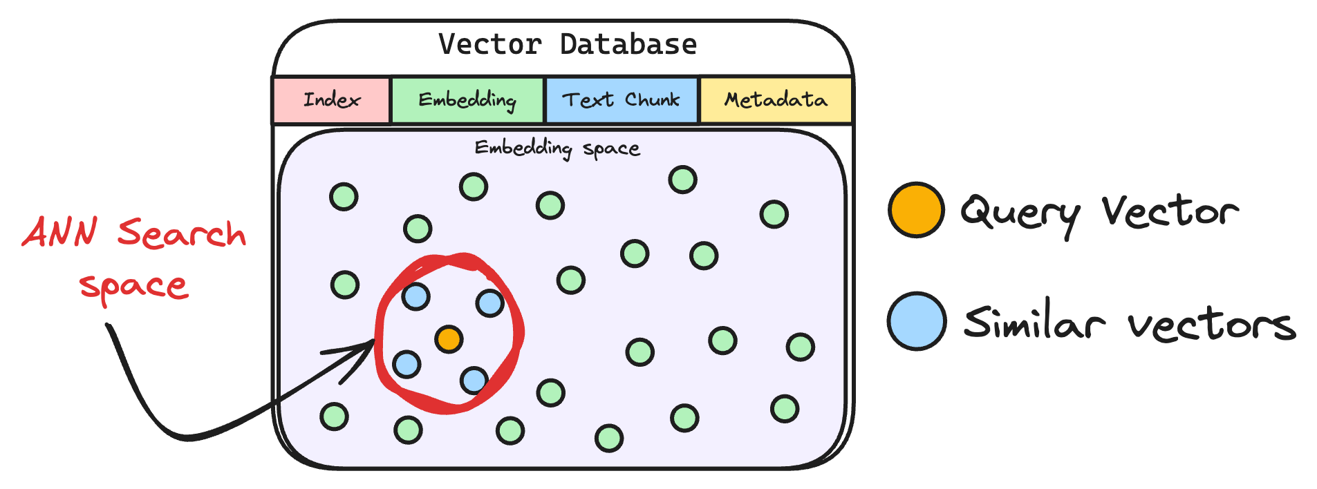 Of course, since a vector database can have millions of vectors, a traditional nearest neighbor search isn't feasible since it will measure the similarity with all vectors.
