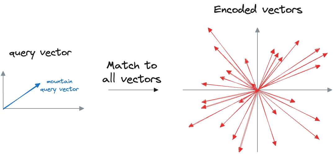 The vectorized query is then compared against our existing vectors in the database to find the most similar information.