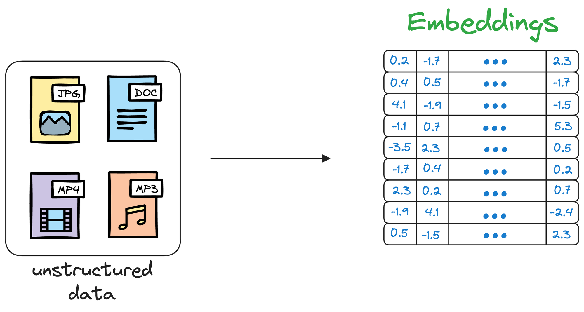 In other words, encoding unstructured data allows us to run many sophisticated operations like similarity search, clustering, and classification over it, which otherwise is difficult with traditional databases.