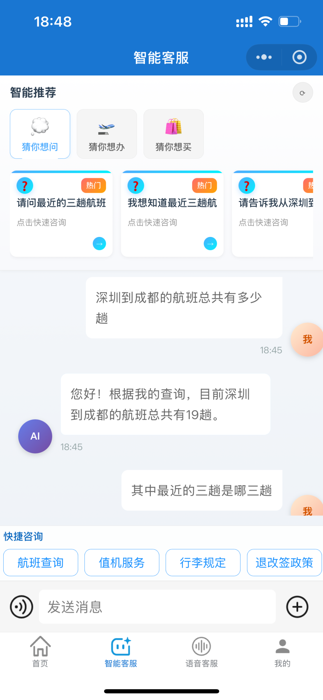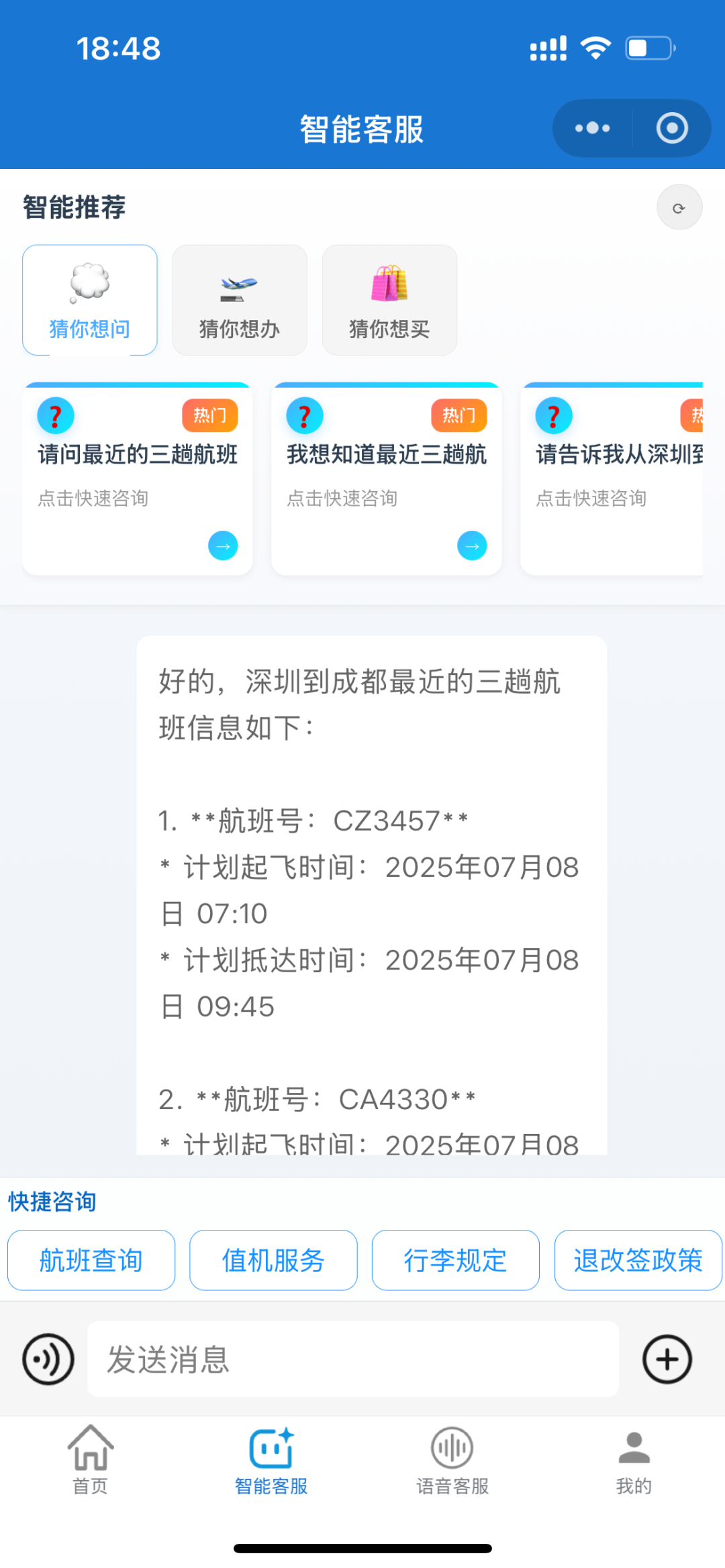 :我们认识到用户意图有时是模糊的。为此,系统内置了智能推荐模块(“猜你想问”、“猜你想办”、“猜你想买”)。当无法完全确定用户意图时,系统会基于当前对话和知识库,主动推荐相关问题、业务或商品,从而在提升问题解决效率的同时,极大地改善了用户体验并增加了系统的容错能力。