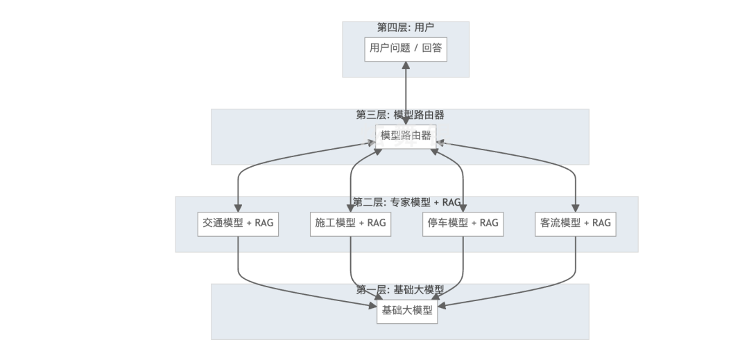 - 对于需要多个领域模型协同的问题(如“地铁施工对火车站客流的影响” → 涉及交通模型和施工模型),路由器负责调用多个模型并融合结果。