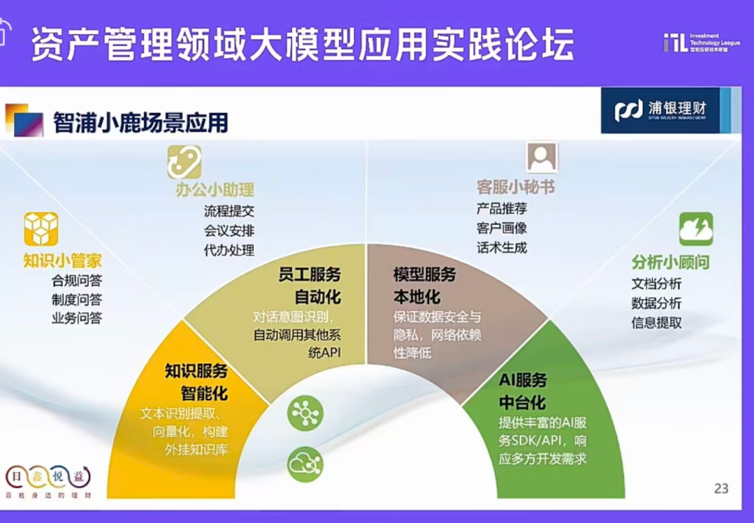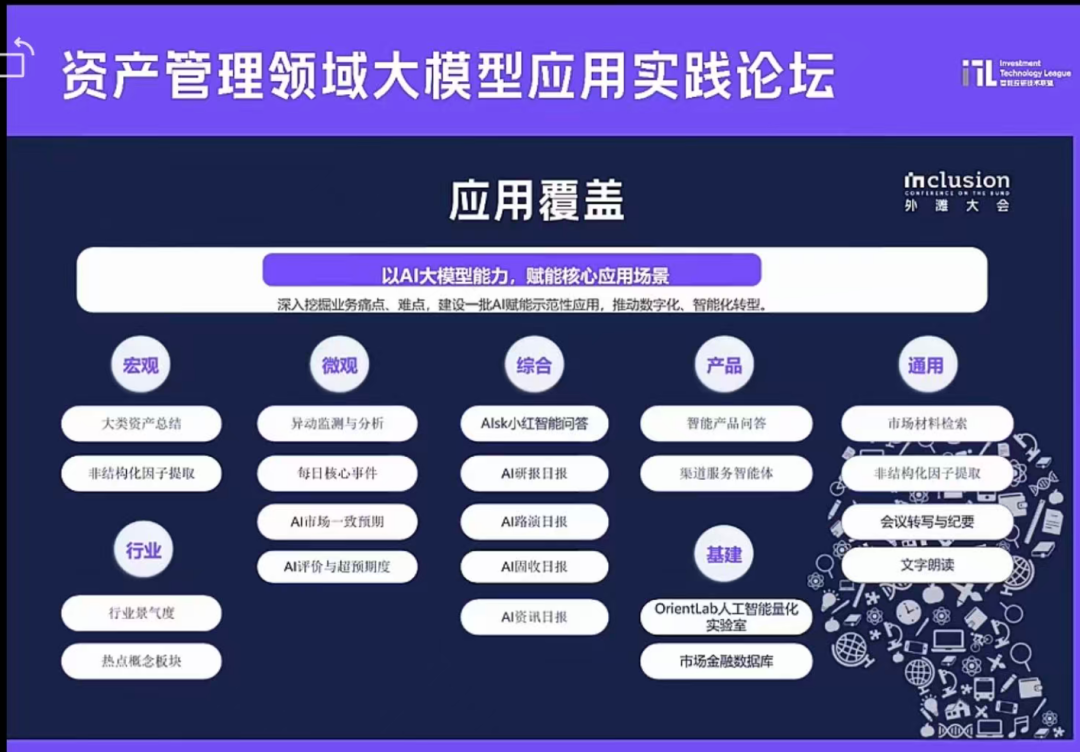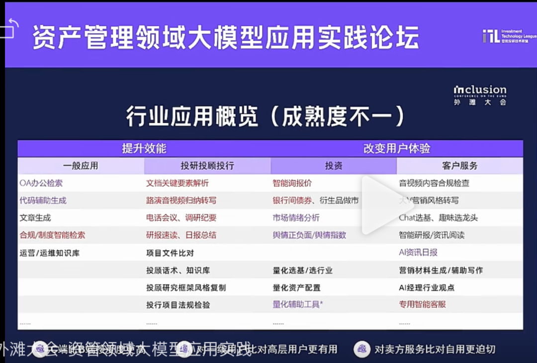 与去年的相关演讲相比,今年介绍的机构大模型应用已经不只停留在纸面上,而是深入到大模型应用真正对业务赋能环节。我来总结一些干货。