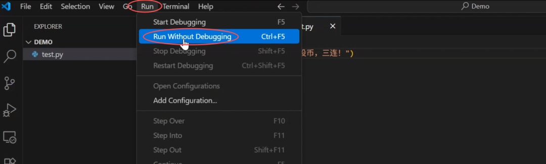 点击上方的 Run 按钮,选择 Run Python File in Terminal。