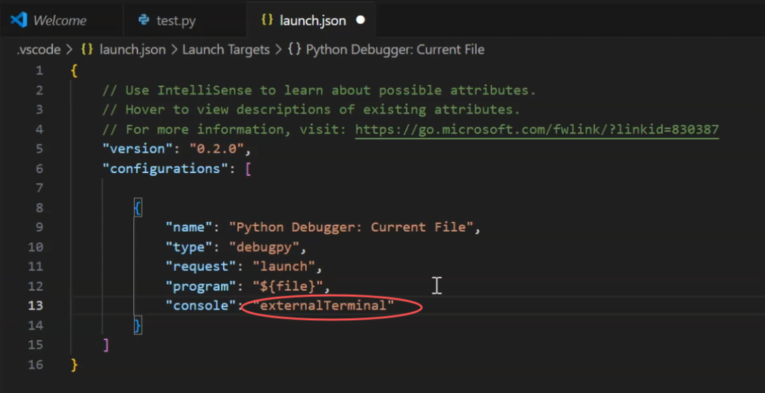 如果你希望在 单独的终端窗口里运行 Python,可以这样配置: