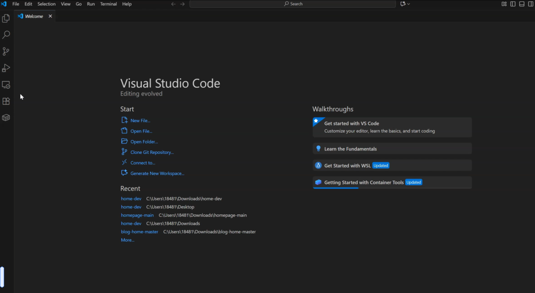 安装完成后,打开 VSCode,你会发现它还是一个“空壳子”,还不能直接写 Python 代码。