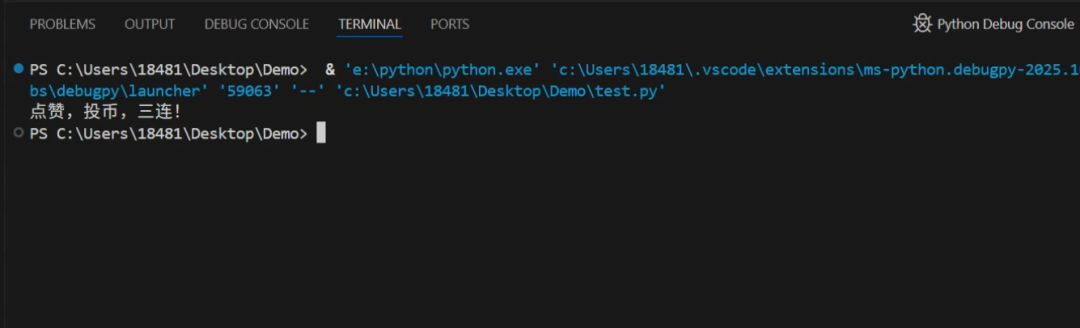 到这里,Python + VSCode 的完整开发环境已经配置好: