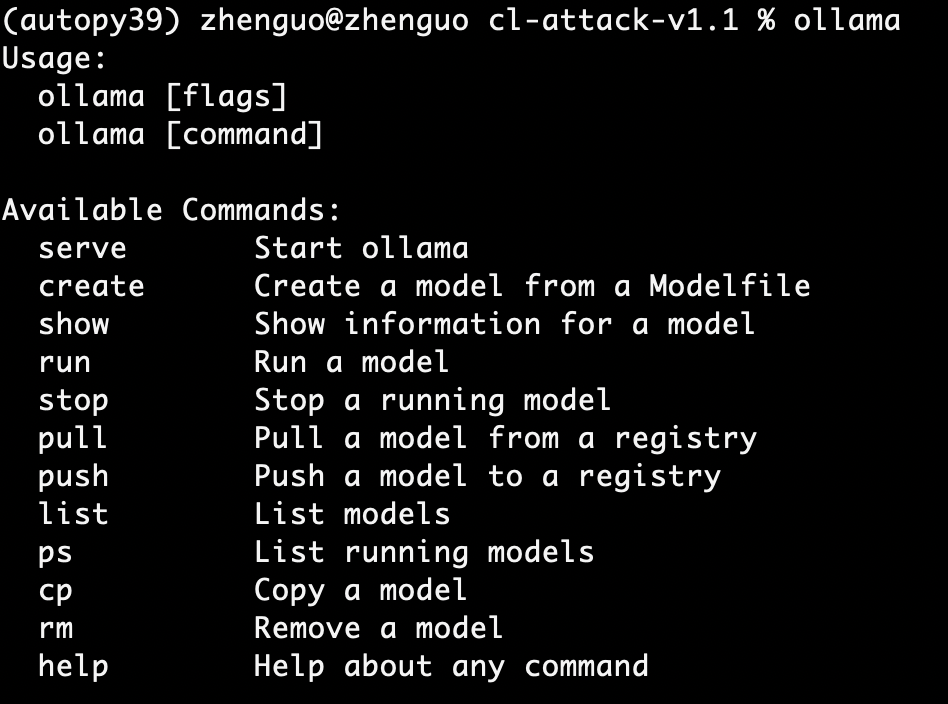 安装后,打开命令窗口,输入ollama,然后就能看到它的相关指令,一共10个左右的命令,就能帮我们管理好不同大模型: