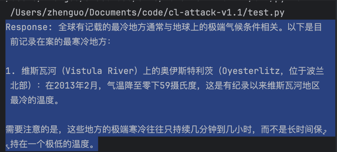 首先,因为这些大模型都是开源的,安装在自己的电脑上也是免费使用的,如下图所示启动qwen7b后,我可以直接在命令窗口提问它,全球各地有记载的历史最低温度是多少?,后面是qwen的回复: