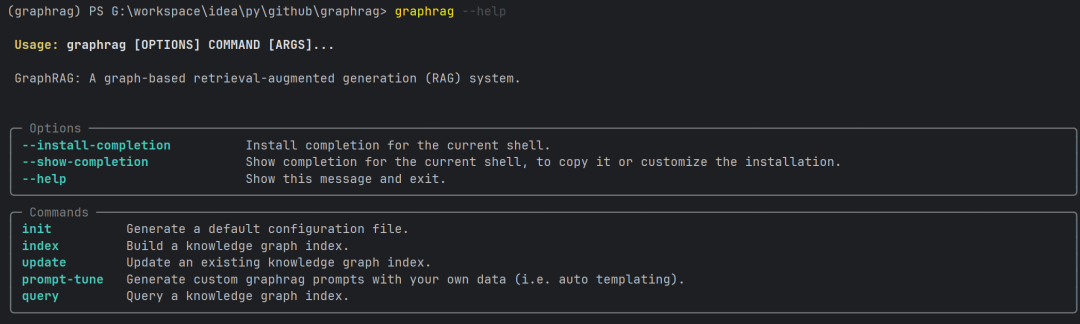运行 graphrag init 命令