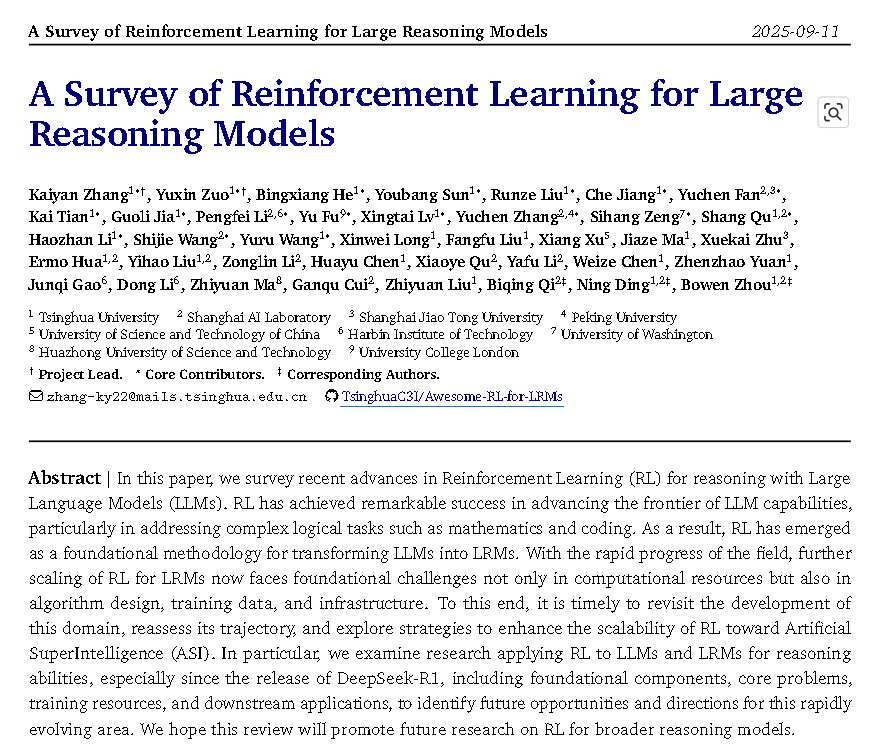 大模型论文 | 114页大型推理模型的强化学习综述(清华最新发布)