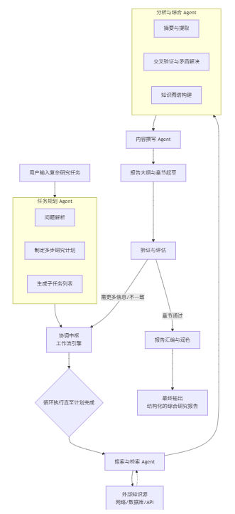 (1)问题规划Agent:拆解任务并制定检索策略;