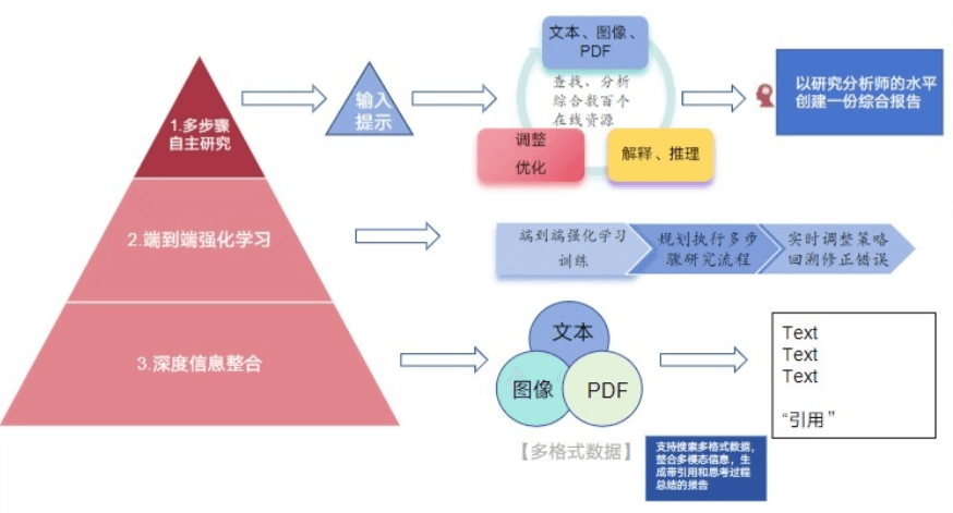 | 输出形式 | 简洁回答+引用 | 结构化解释 | 深度报告+分析洞察 |