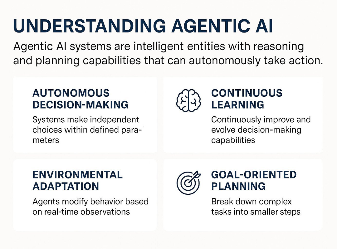 Agentic AI系统是具备推理与规划能力、可自主采取行动的智能实体。与受限于预设规则的传统AI系统不同,它以自主化、自适应、目标驱动的方式运行,能够独立行动,并基于实时数据实现自我进化。工业场景中的Agentic AI核心能力包括: