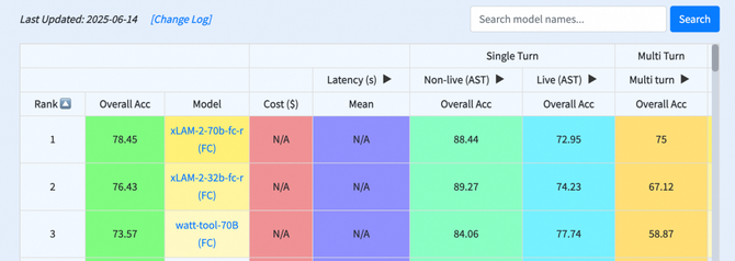 下方截图是伯克利今年6月发布的函数调用排行榜,是对外部工具调用的基准,用于评估模型使用工具进行响应的能力。该排行榜显示大模型在引入函数调用或使用工具的时候,几乎所有大语言模型的性能都会比原始文本生成任务中有所下降,在多函数调用场景中,准确率显著低于单函数调用。