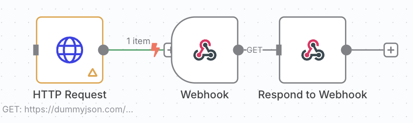 - 拖入 Respond to Webhook 节点,并连接在 workflow 的最后一步。