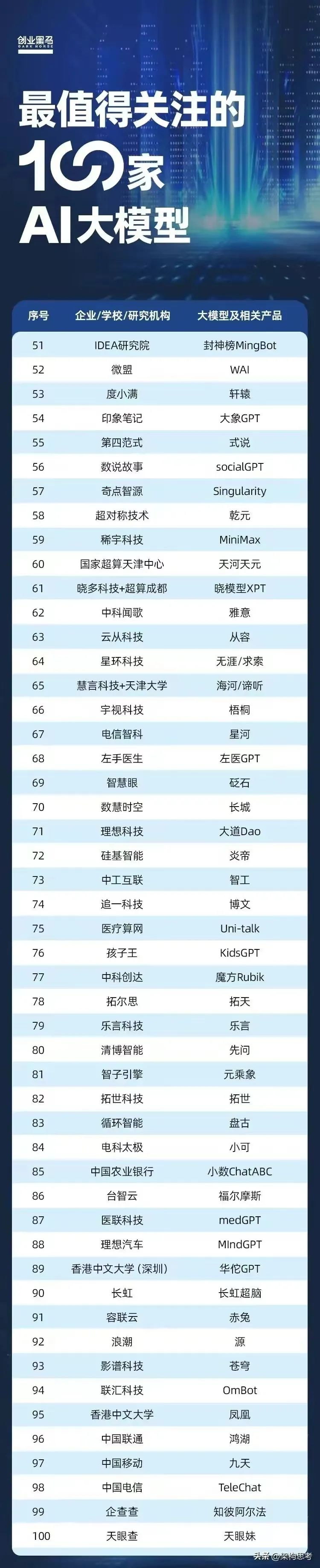 这里整理了《百模大战:最值得关注的100家AI大模型》,从这100个AI明星企业,足以窥见未来伟大的新世界!