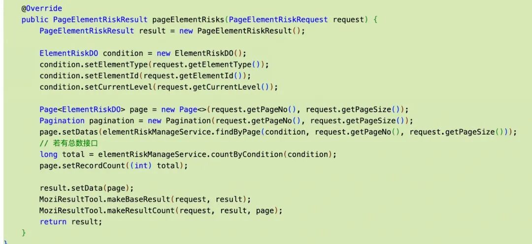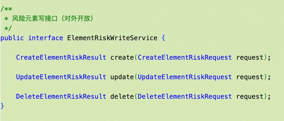 - 接口参数以Request结尾、返回对象以Result结尾。