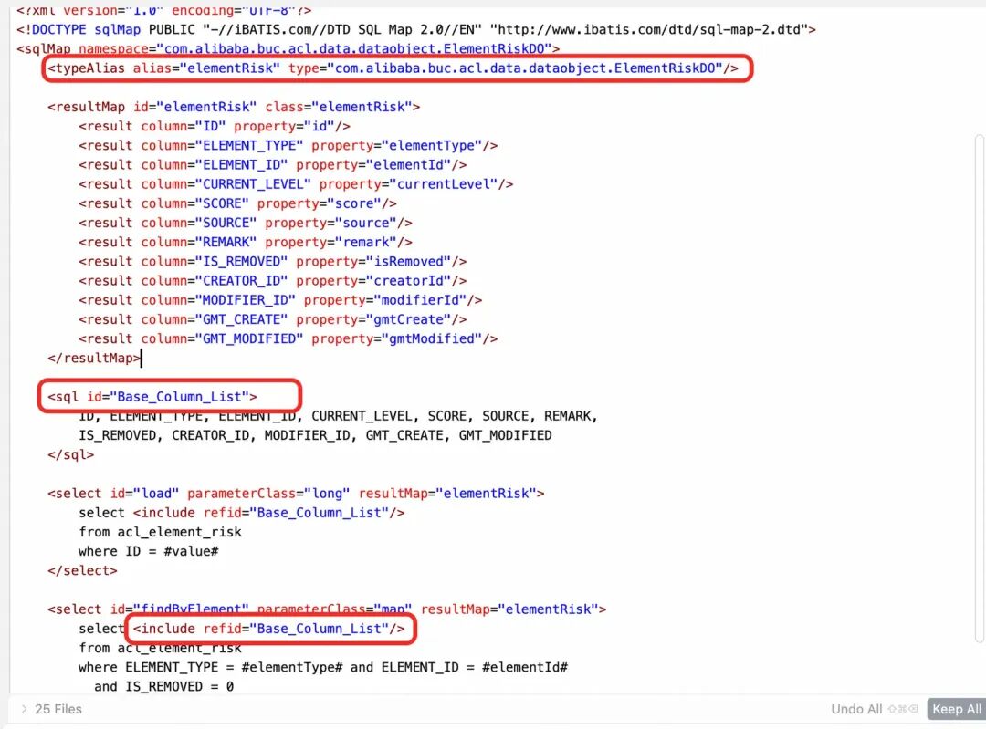 生成的Mapper结构与模版一致,包括在文件顶上配置resultMap定义、提供load查询方法等;