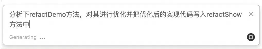 编辑器中使用command+k唤起AI对话框,输入我们希望Cursor做的工作。