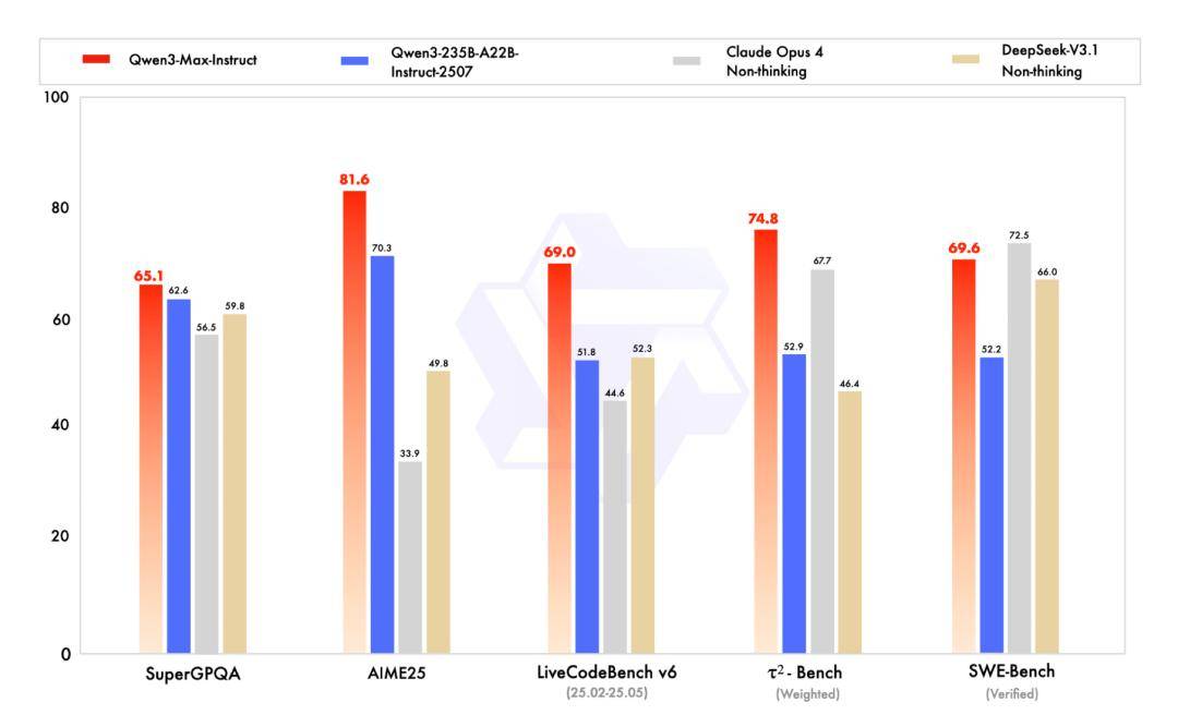 其中,在大语言模型中,阿里通义旗舰模型Qwen3-Max亮相,性能超过GPT5、Claude Opus 4等,跻身全球前三。同时,通义千问的下一代基础模型架构Qwen3-Next及系列模型也正式发布,模型总参数80B仅激活 3B ,性能即可媲美千问3旗舰版235B模型。