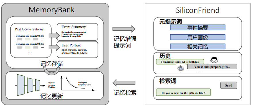 换句话说,MemoryBank 让 AI 不仅能记住,还能遗忘,从而表现得更接近人类。