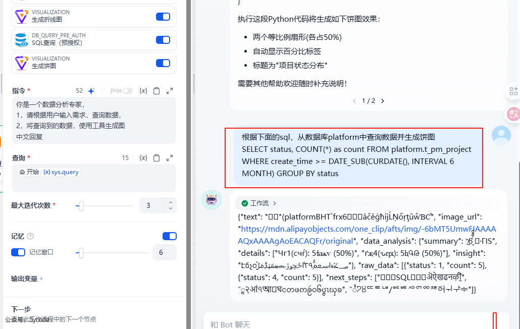 我们已经把 Dify 调通 MCP 工具,也发布了 MCP 服务,并支持图表生成。