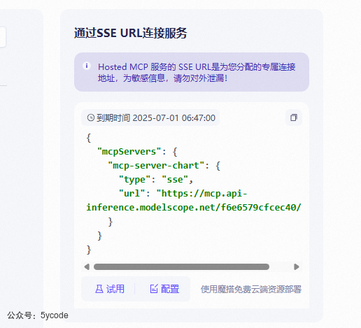 在魔搭社区,我们可以生成一个24小时有效的mcp服务(这点非常赞)